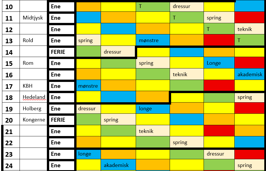 Oversigt over stævner, træning holdundervisning og teoriundervisning for distanceteamet: